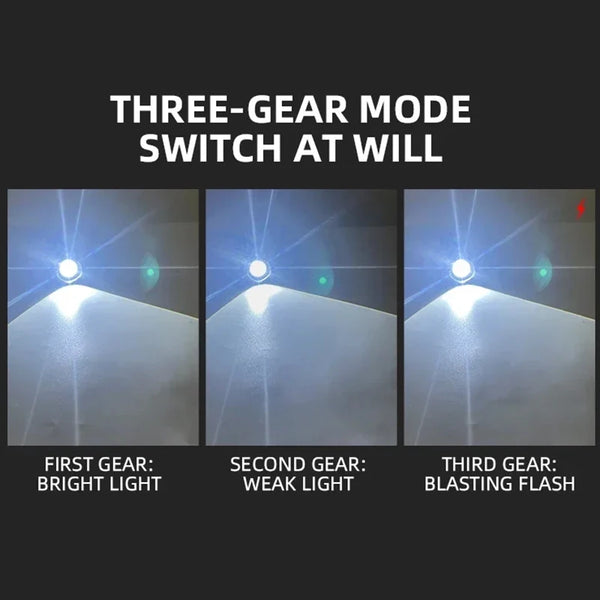 Die teleskopische Zoomfunktion fokussiert das Licht für Fernsicht; zusätzliche Modi wie Flutlicht und Warnblitz lassen sich per Knopfdruck wechseln.